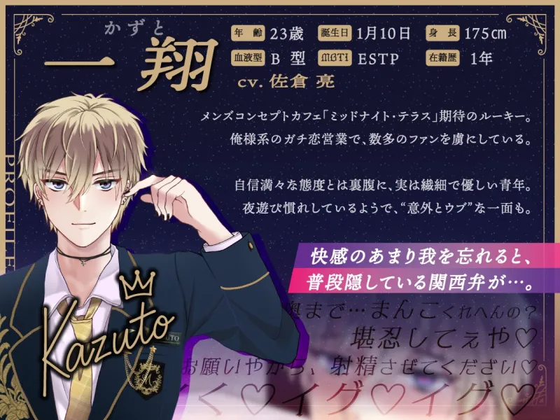 【女性優位♡関西弁喘ぎ1時間】俺様気取りのコンカフェ店員を射精寸止めで徹底的におしおき「お願いやから、射精させてぐだざい♡」/ミッドナイト・テラス Vol.02 一翔