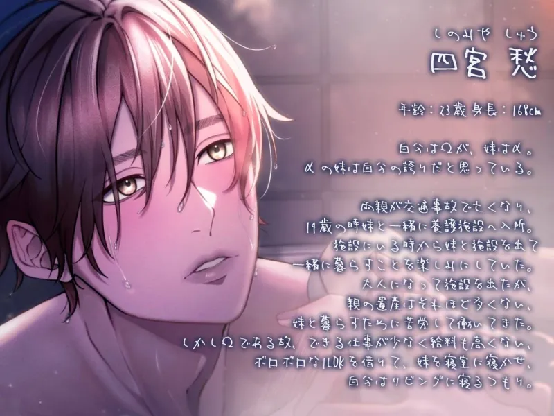 Ω。両親が交通事故で亡くなり、十四歳の時に妹のヒロインと一緒に養護施設へ入所。
