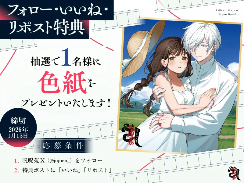 1.呪呪苑公式X(x.com/jujuen_ )をフォロー