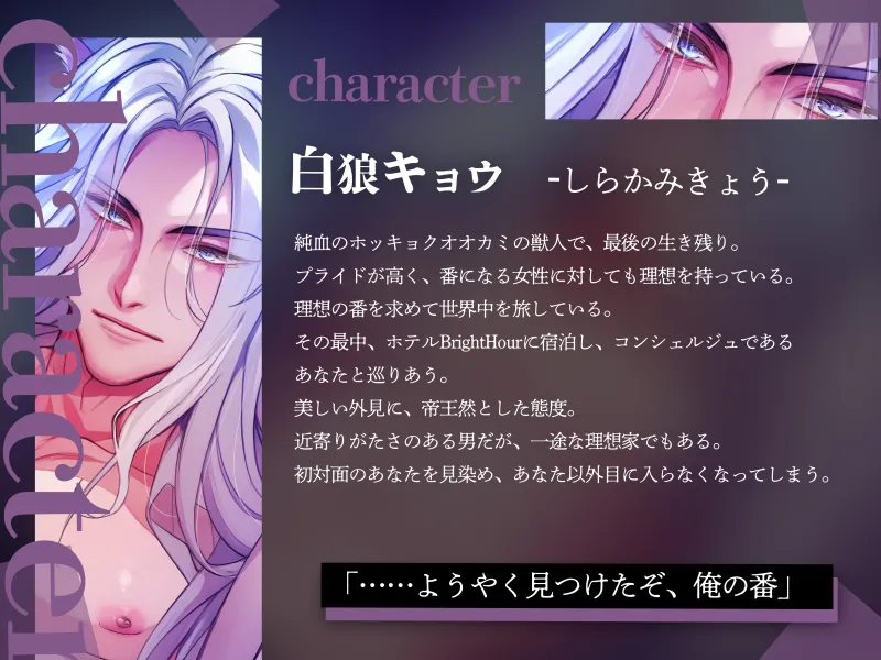 ホッキョクオオカミの獣人が現れる。スイートルームの客である彼、キョウは
