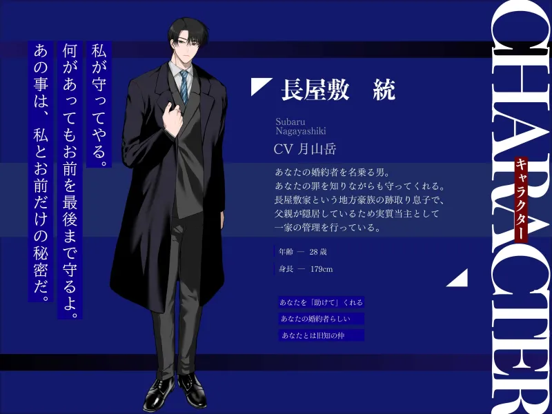 「長屋敷 統」が現れる。困惑しているあなただったが、その婚約者と共に生活を送ることに。