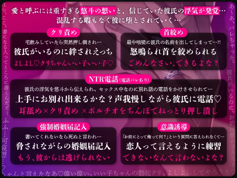 (首絞め、怒鳴り、声我慢しながら彼に別れ話、NTR電話、ちんぽでポルチオ押し潰し)