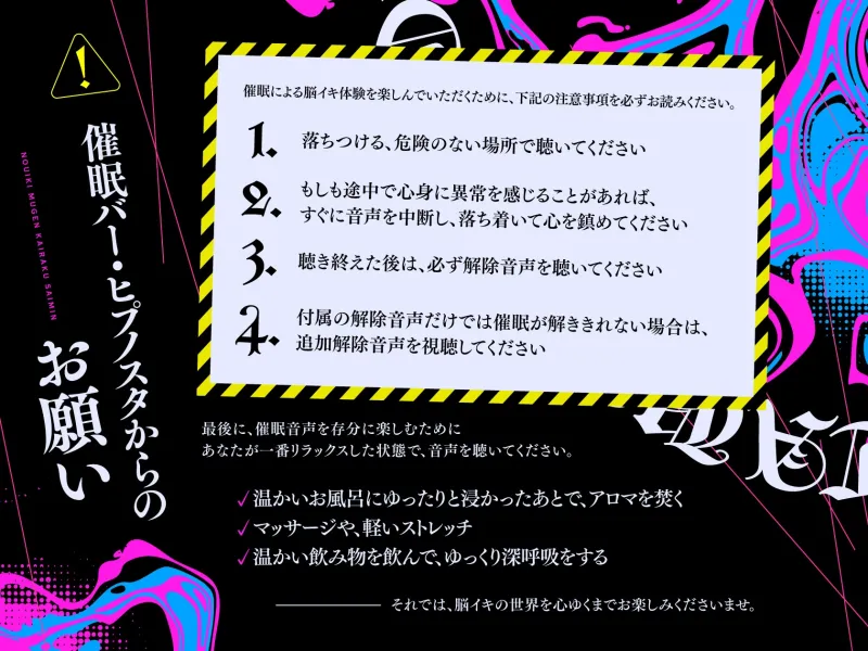 本催眠音声を視聴するにあたっての注意事項、およびご案内です。