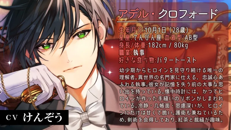 あなたのそばには、優しく見守ってくれる執事・アデルがいた。